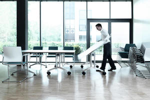 Mobilität dank moderner Technologien gilt als Megatrend. In Wirklichkeit aber sind fast alle Funktionen und Aufgaben auf den Desktop verdichtet: Konzentriertes Abarbeiten, E-Mailverkehr, Internetrecherche und selbst Telekommunikation, Videokonferenzen oder kurze analoge Besprechungen finden am selben (Computer-) Arbeitsplatz statt. – Und das häufig im flächenverdichteten Großraumbüro. Die visuellen und akustischen Störfaktoren schaden der Produktivität und machen auf Dauer krank. Was kurzfristig bei der Fläche eingespart wird, muss das Unternehmen durch schlechtere Leistungen viel teurer bezahlen. Neue Organisationskonzepte setzen daher auf differenzierte Raumangebote: vom Team- und Projektbüro über die Denker- und Konzentrationszelle bis zu abgeschirmten informellen Kommunikationsflächen und geschlossenen Besprechungs- und Konferenzräumen. Je nachdem, was gerade ansteht, sucht der Mitarbeiter diejenige Umgebung auf, die ihn bei seiner Aufgabe besonders gut unterstützt. Die räumliche Entzerrung setzt wichtige Bewegungsreize und fördert neben der mentalen Flexibilität auch Begegnungen zwischen den Mitarbeitern.