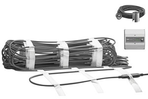 Zum Einsatz kamen die elektrischen AEG Heizmatten „FFH 300 Twin“ – ausgelegt auf eine Heizleistung von 300 W/m² und mit einem hochwertigen Heizkabelaufbau gemäß VDE 0253. Durch die Flexibilität der 90 cm breiten Heizmatten ließen sich Neigungen und Radien sehr einfach anpassen. In den drei quer zur Fahrbahn verlaufenden Ablaufrinnen erfolgte die dreifache Heizschleifenverlegung mit dem AEG Heizkabel DIC 25. Somit ist gewährleistet, dass das sich auf der Rampe bildende Schmelzwasser in der Rinne nicht erneut gefriert, sondern vollständig ablaufen kann. Gegenüber rein nach Temperatur gesteuerten Anlagen lassen sich mit dem vollelektronischen Eismelder bis zu 80 % Energie einsparen. Die Funktionsweise ist einfach und vielfach erprobt: Bei erwarteter Glätte durch Schneefall oder Eisbildung schaltet sich das Frostschutz-System automatisch ein. Es schaltet sich selbstständig wieder ab, sobald die beheizte Fläche vollständig abgetaut und trocken ist.