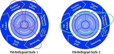 Für FM-Organisationen sind allgemeine Reifegradaussagen (vgl. Grafik 1) spezifisch zu formulieren, um sie praktisch einsetzen und nutzen zu können.