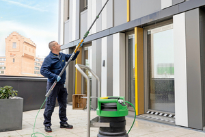 Auch die Bodenpflege erfolgt ressoucenbewusst: Der Einsatz des Reinigungsautomaten „iMop“ spart gegenüber der herkömmlichen Nassreinigung viel Wasser ein. Dank des einfachen Handlings und des geringen Gewichts ist das Gerät nicht nur für Flure geeignet, sondern erreicht auch in möblierten Büro- und Besprechungsräumen jeden Winkel. Gründlichkeit ist erst recht bei den Sanitäranlagen gefragt, damit hohe Hygienestandards und die Verfügbarkeit mit Verbrauchsmaterial stets gewährleistet sind.