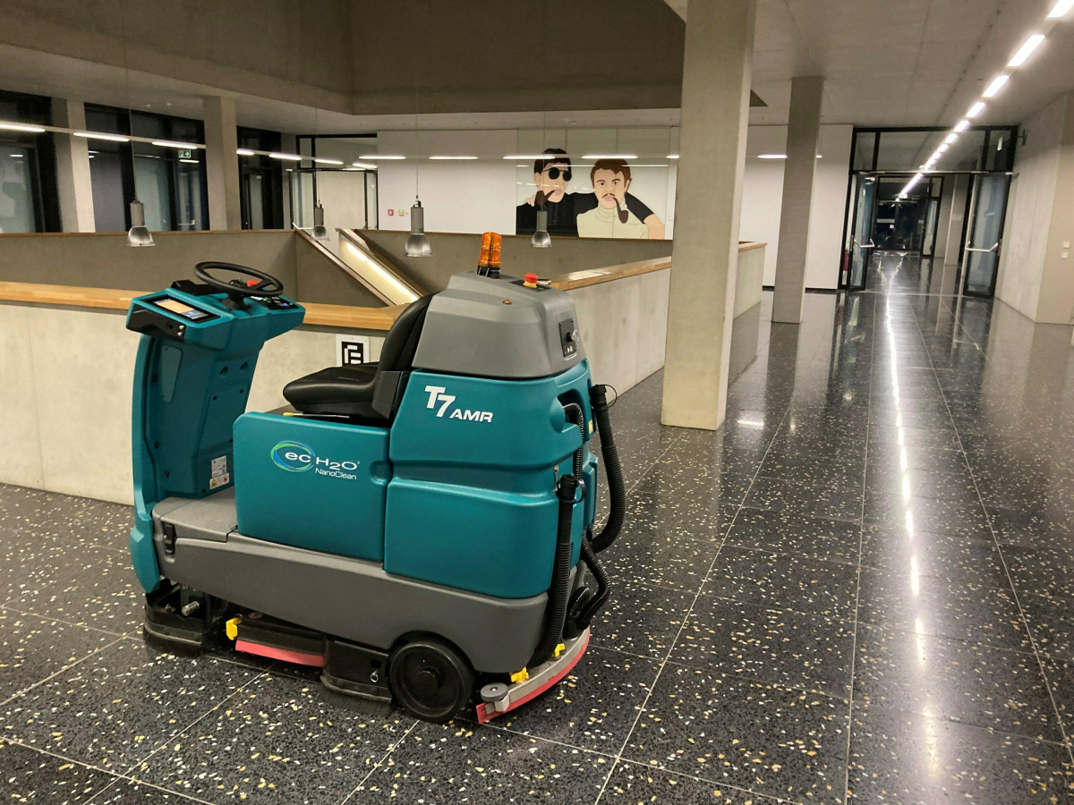 Eine Tennant T7 mit Brain OS-Unterstützung, eine der von Götz-Gruppe an der Universität Regensburg eingesetzten Robotik-Scheuersaugmaschinen