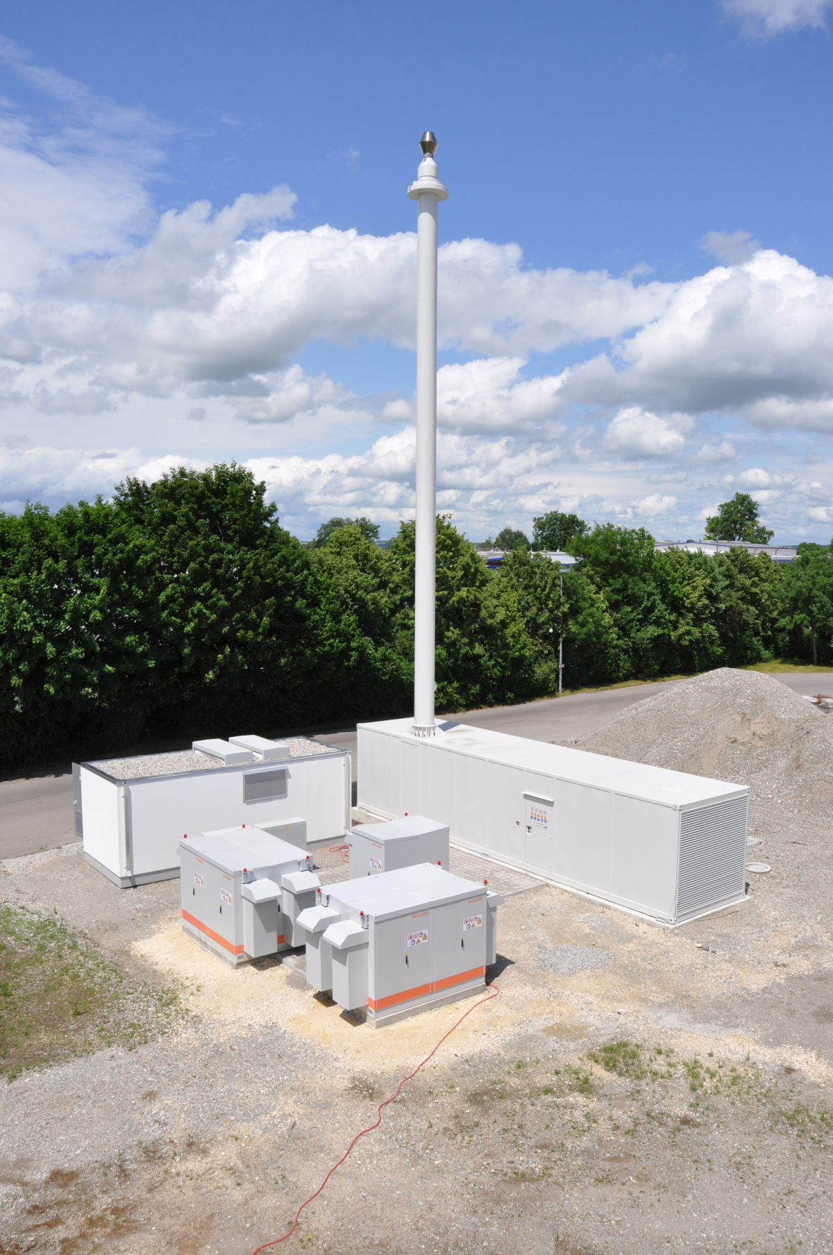 Zehn Outdoor-Gewerbespeicher scalebloc des Herstellers Intilion mit einer Gesamtkapazität von 685 kWh kappen die Lastspitzen der Molkerei um 618 kW. Das System besteht aus einer Batterie, einem Umrichter und einem Energiemanagementsystem. Es ist in einem klimatisierten Outdoor-Gehäuse untergebracht, das jeder Witterung standhält. Ein Schutzrack verhindert, dass sich Brände ausbreiten können. Zusätzlich hat Intilion seine scaleblocs mit einer Schallschutzhaube ausgestattet, die den Schallpegel auf unter 35 dB senkt. In Günzburg unterstützt ein 1.000-kVA-Aggregat die Speicher bei langen Lastspitzen.